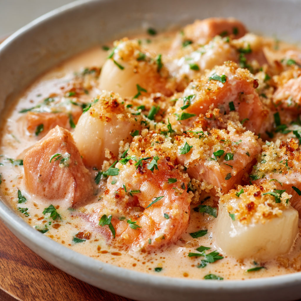 Composée de noix de Saint-Jacques, de crevettes et de saumon, cette cassolette réunit le meilleur de la mer dans une sauce onctueuse et subtilement parfumée. Le vin blanc, le paprika et la crème fraîche créent une base veloutée qui enveloppe les fruits de mer sans masquer leur goût délicat. Servie chaude, gratinée ou non selon les envies, elle apporte cette touche festive, légère et iodée que l’on aime retrouver en entrée ou en plat principal lors des repas de fin d’année.