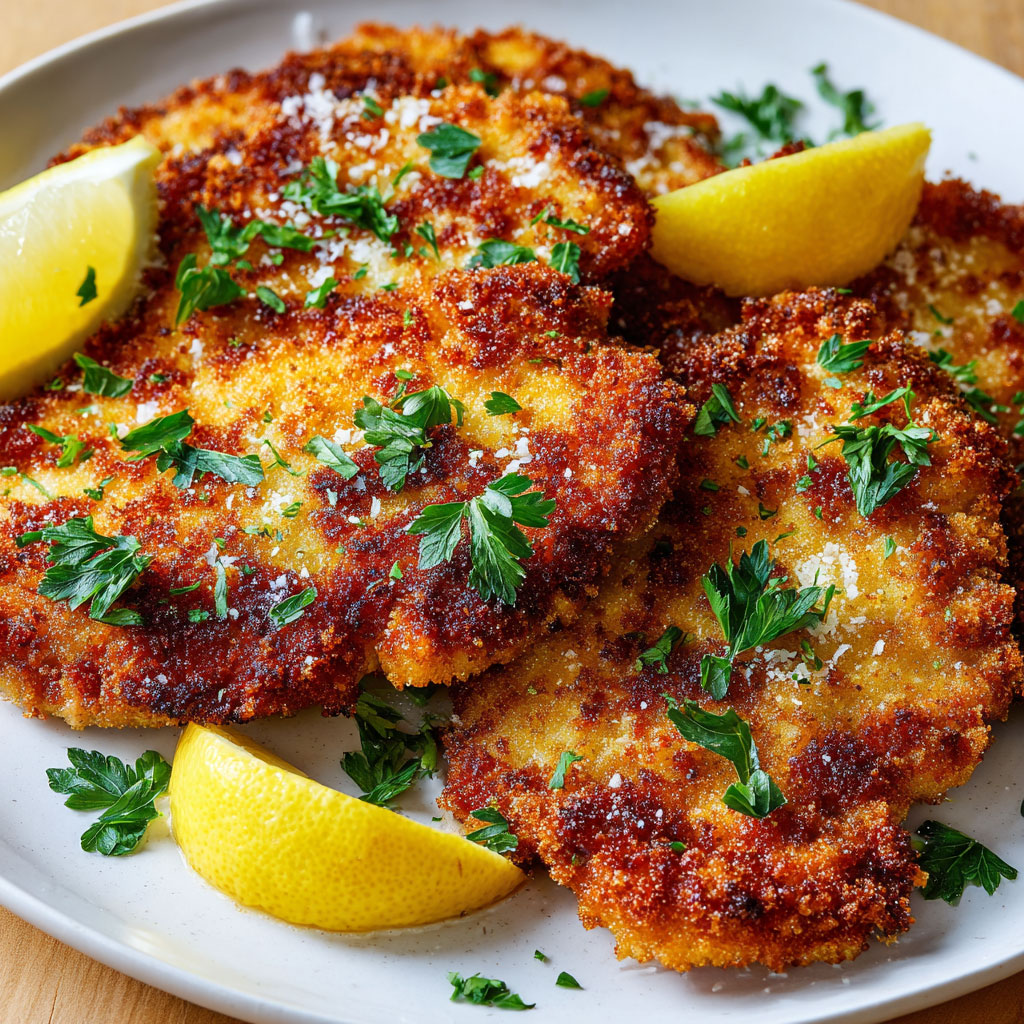Ce qui rend cette recette irrésistible, c’est avant tout l’équilibre parfait entre le fondant de l’escalope de veau et le croustillant doré de l’enrobage. Le parmesan, en fondant légèrement à la cuisson, apporte une note salée et corsée qui relève la viande avec subtilité. Contrairement aux panures ordinaires, ici, chaque bouchée est savoureuse et riche en caractère, tout en restant légère grâce à une cuisson maîtrisée et un accompagnement bien choisi.