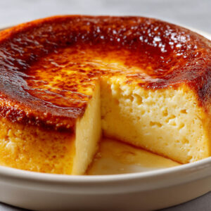La magie de ce dessert repose aussi sur sa simplicité. Une base de pâte à gâteau classique – œufs, lait, farine – versée à la cuillère sur le sirop chaud sans jamais mélanger. Pendant la cuisson, la pâte va doucement absorber le sirop, le faire remonter autour d’elle, tout en cuisant et en formant une croûte dorée à la surface. Le contraste entre le dessus légèrement croustillant et le fond gorgé de sirop chaud est tout simplement sublime.